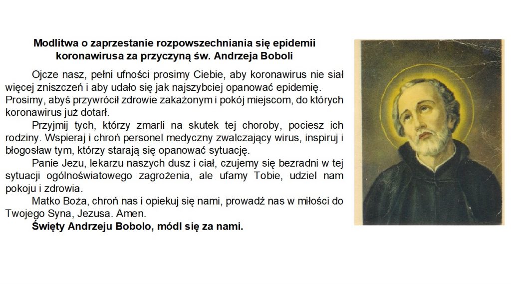 • Wyższe Seminarium Duchowne zaprasza do udziału w serii trzech spotkań online „Drogi miłości”. Spotkania mają na celu pomoc w rozeznaniu życiowego powołania. Więcej informacji w gablocie ogłoszeń.
