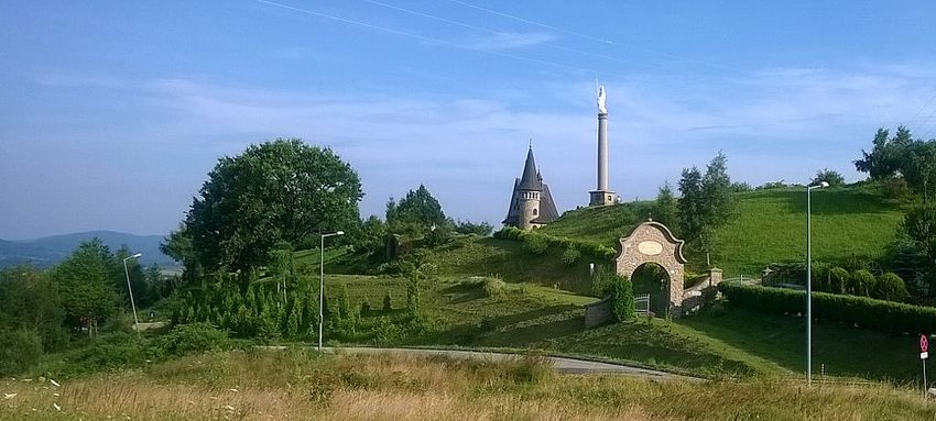 Architekt jednak bał się takich rozwiązań i zaproponował umieścić je we wzniesionych na tym wzgórzu kapliczkach przydrożnych, które nawet naszkicował. Wśród przydrożnych kapliczek miała być również symboliczna baszta.